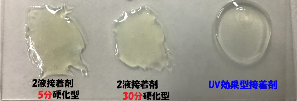 2液接着剤とUV硬化型では出来上がりが大きく違います。