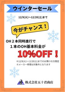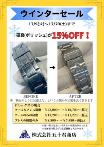 「オーバーホール2本同時進行で1本の基本料金10%OFF」「研磨・ポリッシュ15%OFF」キャンペーンを実施いたします。