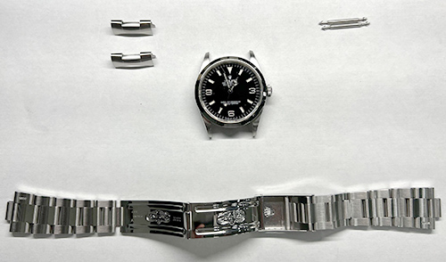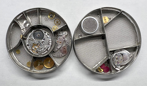 今回、オーバーホールを初めてされたということで、内部には経年劣化が見られました。自動巻き時計のゼンマイの巻き上げに必要なローターを中心で支えている役割の「ローター真」が摩耗していましたので、交換させていただきました。 またバックルの中留の緩みは変形を調整し、修正いたしました。
