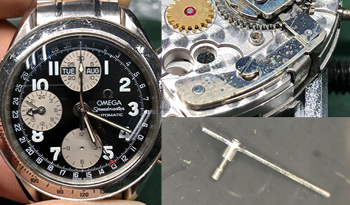 ご相談をいただいた通り、6時側の針軸が折れており、内装部品が損傷していたためオーバーホールを行いました。機械式時計は、内装部品の一部の損傷であっても、全体に不具合が生じてしまうものです。また、落とした直後には特に問題が明らかになっていなくとも、後日、不具合が生じることもございます。不具合の早期発見のためにも、定期的なオーバーホールをおすすめします。