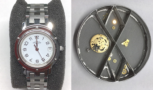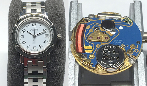 電池交換をしても動かない原因を内部を確認して調査したところ、そもそも回路に電流が流れないという不具合が生じていることがわかりました。クォーツ時計の心臓部である回路に不具合が生じますと電池交換をしても動かなくなります。今回は回路交換を行うことで、正常に動作させることができました。