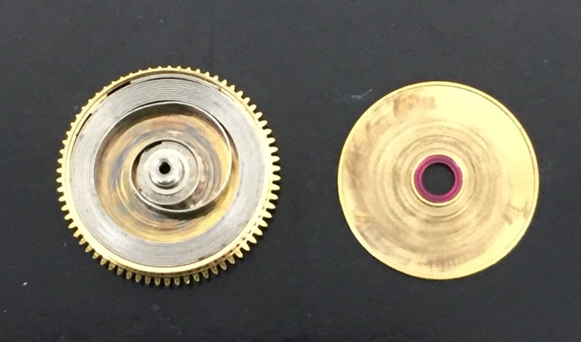 時計が止まってしまった原因を調査しましたところ、内部の部品のうち、ゼンマイが切れていたことが原因と判明しましたため、交換を行いました。ゼンマイとは時計の動力に欠かせないバネの一種で、くるくると螺旋状に巻かれているものです。巻かれ、ほどける力によって生まれるエネルギーで時計は動いています。このゼンマイは経年劣化により、突然切れることもあります。