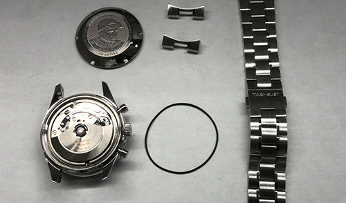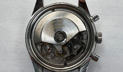 クロノグラフ(ストップウォッチ)の動作不良に関しましては、ボタンの操作状況などで少しずつ歯車がずれてしまい、加えて油切れなどが原因と推測されます。これらの症状は、分解掃除で改善することができました。 また、日付の変更は針廻し・早送り共に問題は見られませんが、分解掃除内で再度確認しながら問題のない状態を確認しながらお修理をさせていただきました。