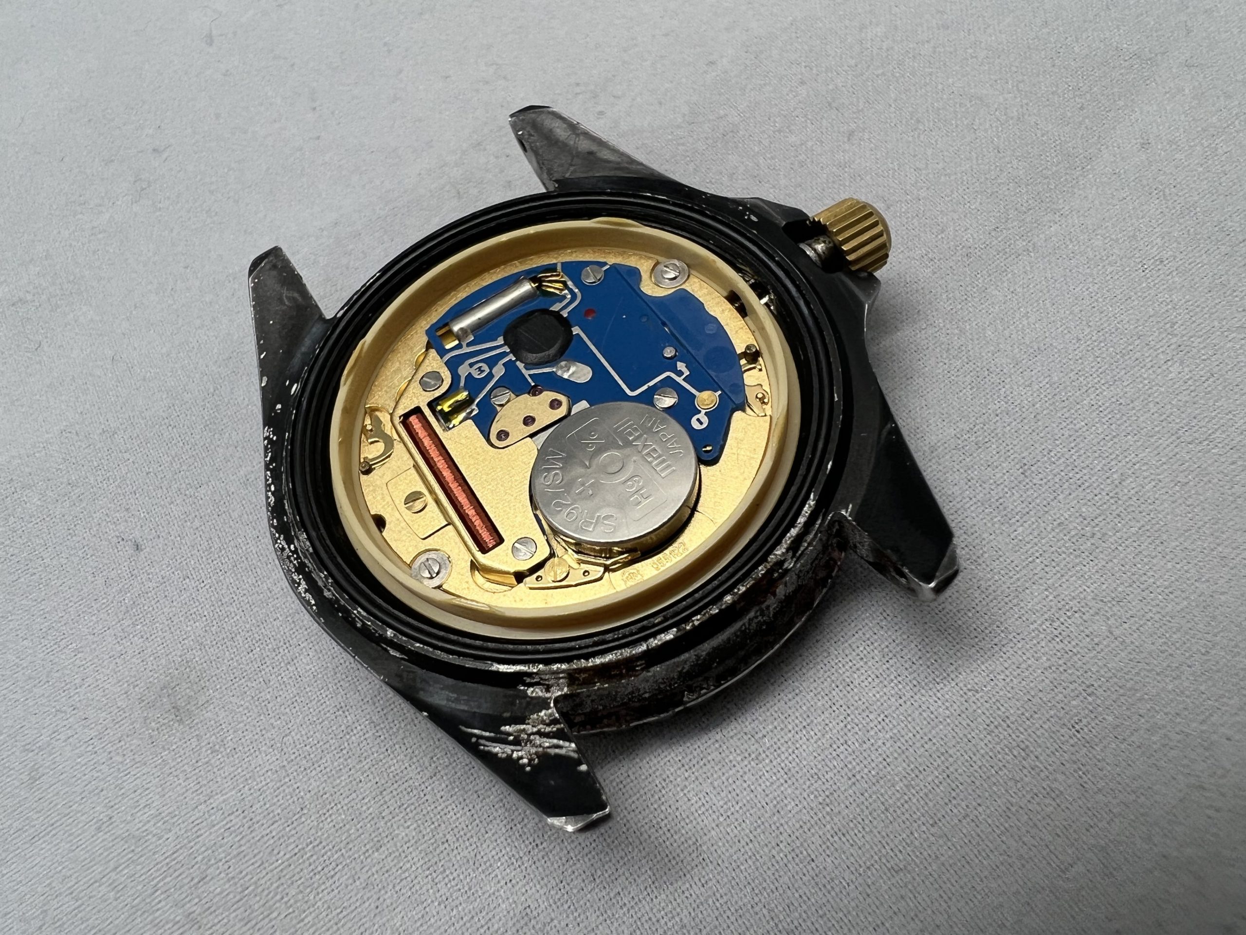 | 症状 | リューズが欠けています。電池切れかわかりませんが現在不動です。 | ||