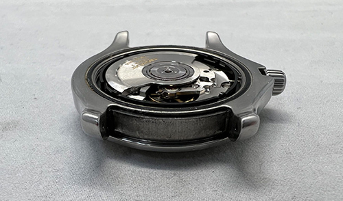 時計の内部に油汚れがたまっており、油切れの状態でした。オーバーホールを行い各パーツを綺麗に洗浄いたしました。定期的なメンテナンスを行うことで、歯車の破損などを未然に防ぐことができます。3〜5年に一度定期的にオーバーホールすることをおすすめします。